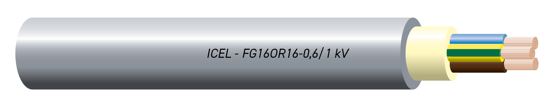 Cavi multipolari per energia, isolati con gomma G16, sotto guaina di PVC, con conduttori flessibili per posa fissa. Non propaganti l’incendio, a ridotta emissione di alogeni (gas corrosivi).